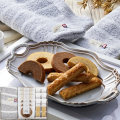 開店・開業祝いTOP お菓子・スイーツ洋菓子洋菓子詰め合わせ タオル・寝具タオル今治タオル スイーツを通じてこころとこころがつながるギフトをお届けします アンド ベイクドスイーツ&今治タオル 詰合せBOX(26B20-02) 価格: ¥2,750 (税込) 販売期間: 手提げ袋(のし等はカート内で選択してください): 選択してください 不要 紙袋・商品が入るサイズ 数量: 個 在庫 在庫あり 返品についての詳細はこちら 【内容】バウムクーヘン(ココア・バニラ)×各3、スティックパイ(プレーン)×6、フェイスタオル(約34×75cm・綿100%)【アレルゲン】卵・乳・小麦・大豆【賞味期間】製造日より120日【箱サイズ】205×310×55mm【重量】520g【生産国】日本※今治認定番号:第2022-688号 ※商品のデザイン・内容等が変更になる場合がございます。※プルダウンにない手提げ袋をご希望の場合は、ショッピングカート内の備考欄にご記入ください。