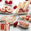 開店・開業祝いTOP お菓子・スイーツ洋菓子洋菓子詰め合わせ 国産小麦粉とあまおう苺濃縮果汁を使用し、苺の風味と味わいを生かして一層一層丁寧に焼き上げたバウムクーヘンなどのお菓子をセットしたギフトをお届けします あまおう苺バウムクーヘン&プチガトー ギフトボックス(26B16-01) 価格: ¥1,080 (税込) 販売期間: 手提げ袋(のし等はカート内で選択してください): 選択してください 不要 ビニールバッグ・ホワイト 数量: 個 在庫 在庫あり 返品についての詳細はこちら 【内容】あまおう苺バウムクーヘン、あまおう苺ロングスティックパイ、あまおう苺ゴーフレット×2、焼きほろろイチゴクッキー×3、ストロベリーチョコクランチ×2【アレルゲン】卵・乳・小麦・大豆・アーモンド【賞味期間】製造日より180日【箱サイズ】240×263×35mm【重量】230g【生産国】日本※商品のデザイン・内容等が変更になる場合がございます。※プルダウンにない手提げ袋をご希望の場合は、ショッピングカート内の備考欄にご記入ください。