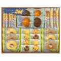 【内容】クッキー(ミルク・メープル・チョコチップ・ショコラ)×各2、スティックパイ(メープル・ショコラ)×各4、マドレーヌ(プレーン・チョコ)×各2、バウムクーヘン(バニラ・ココア)×各3