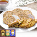 風味豊かなバニラクリームをサンドしたバニラゴーフレットや、上品な味わいに仕上げたチョコゴーフレット、何層にも重ねたパイ生地に細かく砕いたアーモンドを挟み、サックリと焼き上げたアーモンドパイ、チョコをサンドしたやさしい甘さのショコラスティックパイをセットしました。お菓子好きな人にも満足な詰合せです。